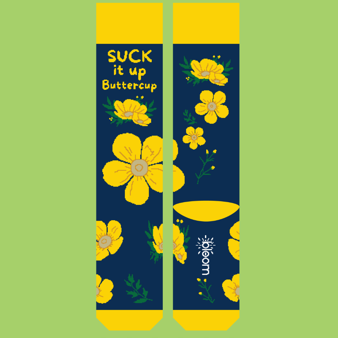 "Suck It Up, Buttercup Socks: A Fun Reminder to Embrace Challenges with a Smile!"