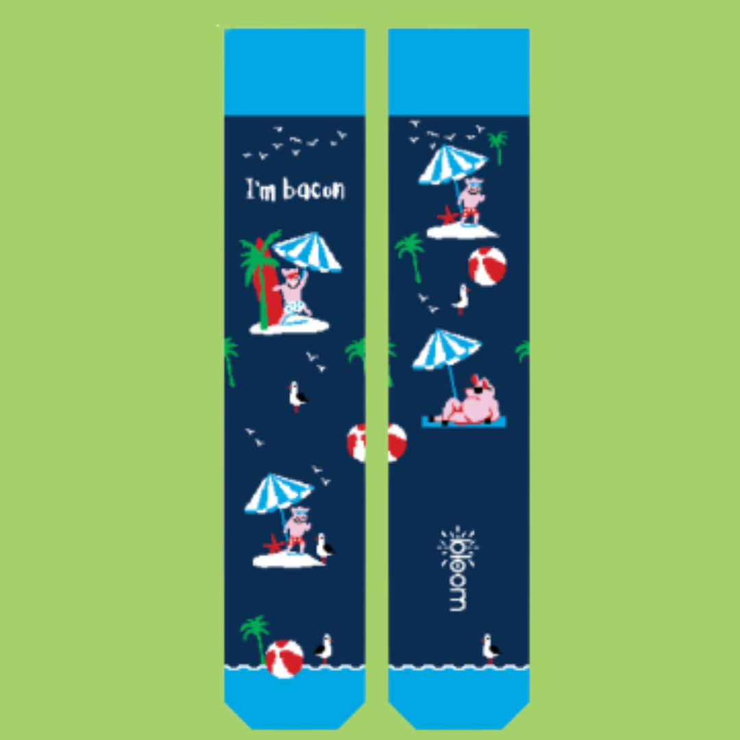 "I'm Bacon Socks: Beach Vibes and Piggy Fun for a Sizzling Style!"